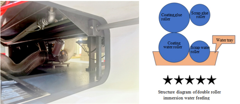 - When other parts ofthe host stop running, the coating roller can operate independently, which is designed to avoid washing the glue during the lunch break, making it more energy-efficient and safe.
